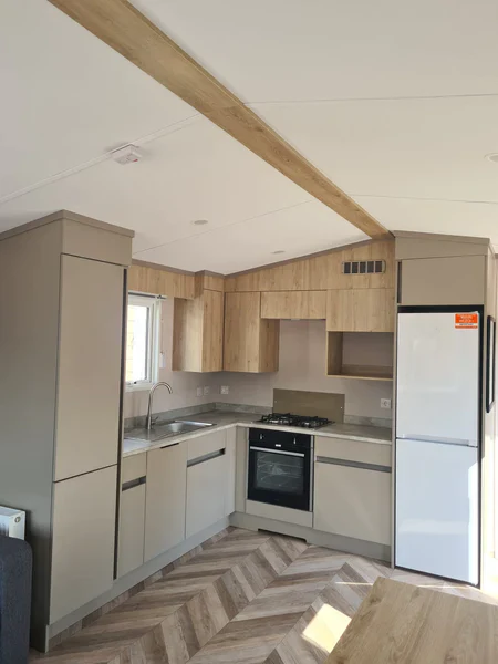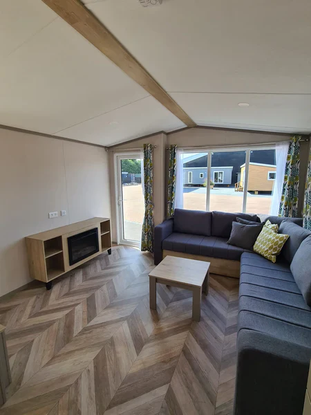 Entrando nella Casa Mobile T2 TACHOER ARREDATA, si nota subito la cura nei dettagli. Il pavimento in vinile a spina di pesce è facile da pulire e aggiunge eleganza agli ambienti. Le luci a LED integrate creano un’atmosfera calda e rilassante, ideale per ogni momento della giornata.